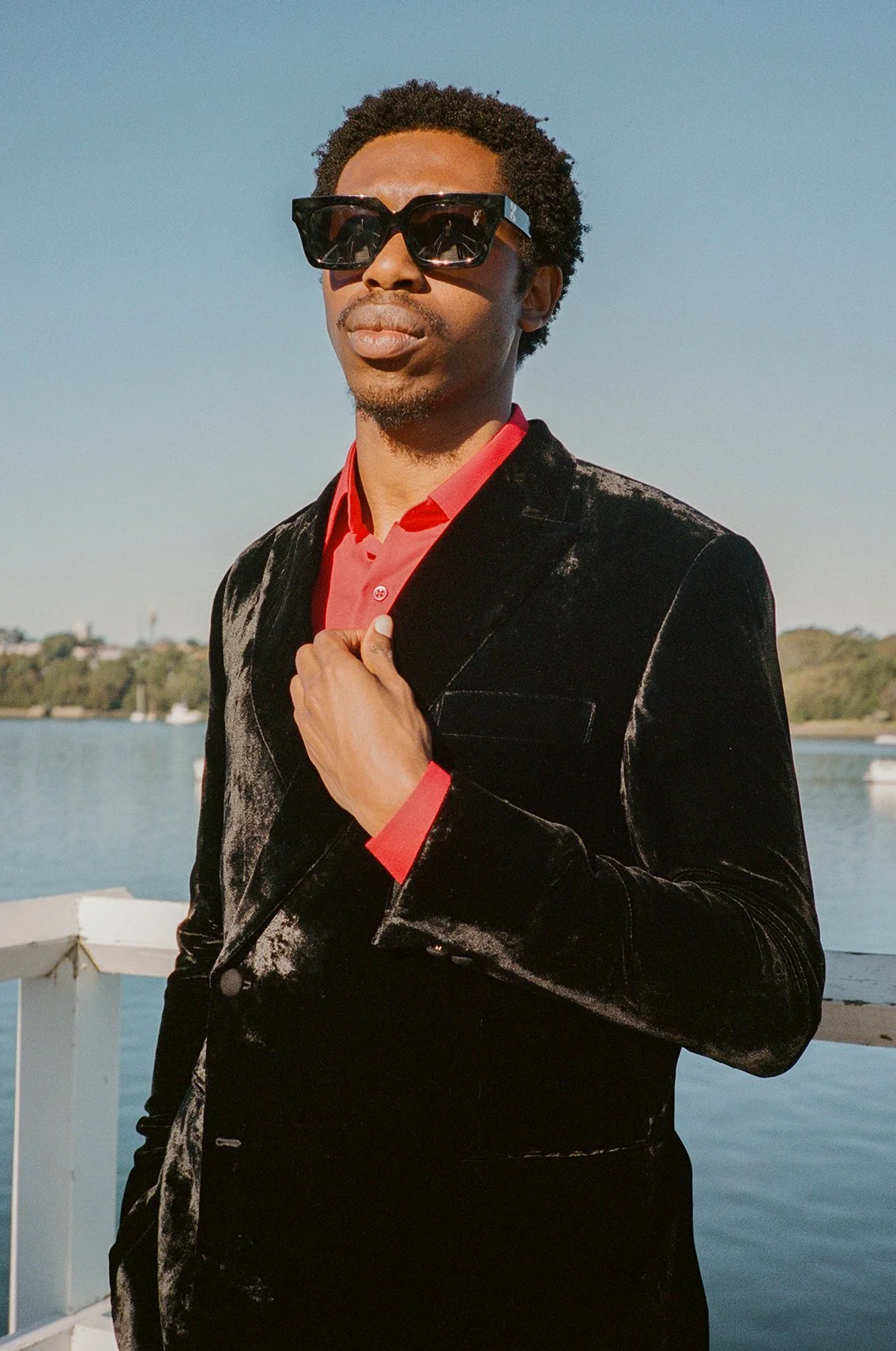 ‘Aussie Blackstar’, the debut album release from the multifaceted and genre-bending musical artist BLESSED, is a sonically diverse and unique listening experience. The rockstar aesthetic revival through hip-hop is one that’s reached new heights in contemporary artists that nod to the attitude and stylings of their counter-genre predecessors. For BLESSED that translates to ultra sharp tailoring, dark luxurious materials and pops of red that represent a duality of love and anger.
