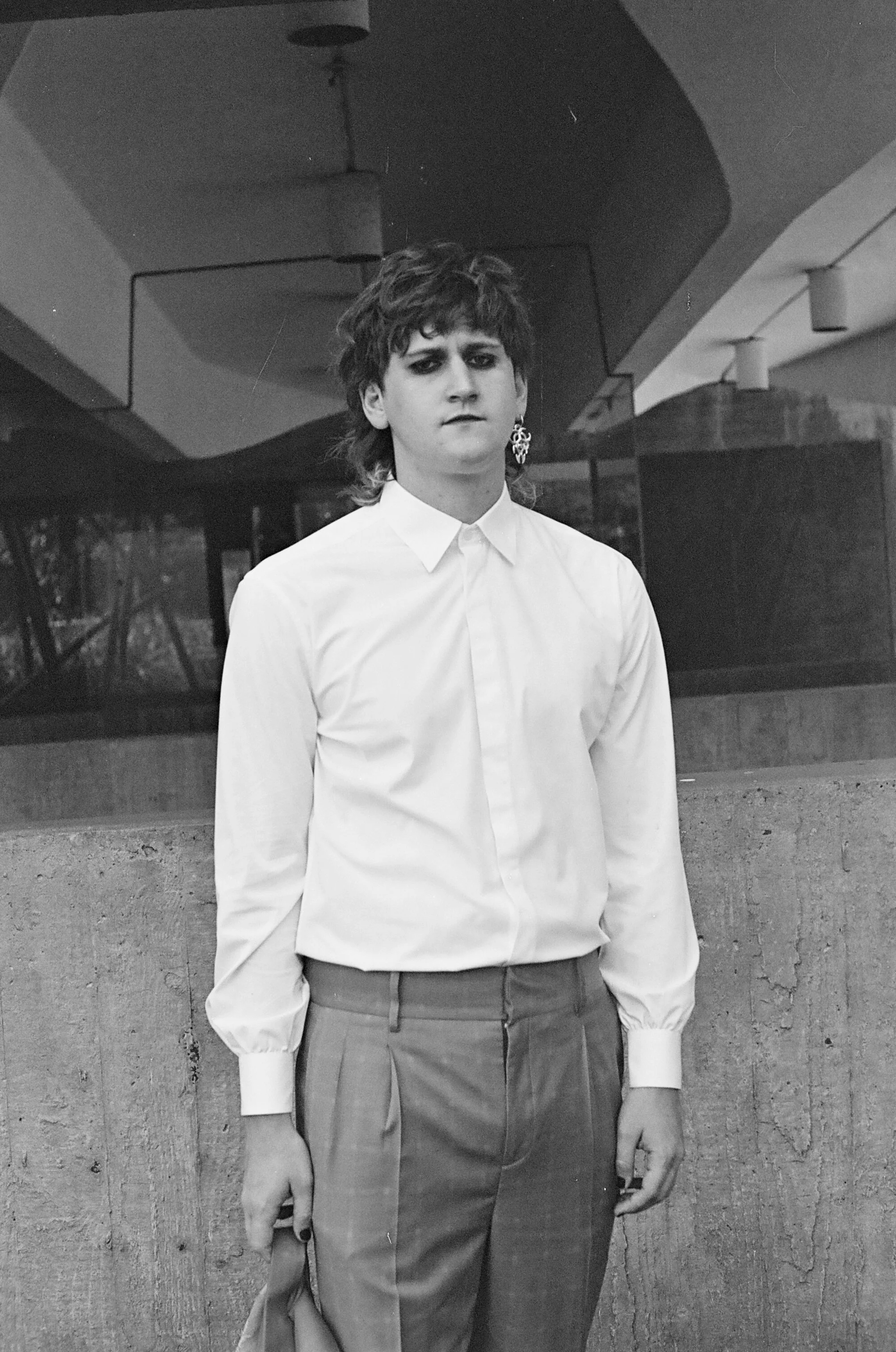 Johnny Hunter have described their musical approach as a dark one, inspired by events in ancient history and gothic literature with style references from David Bowie and Kate Bush. Fashion is a critical tool utilised in the showmanship and creative exploration for Nick. For a long time, the Johnny Hunter uniform has been monochromatic, defined by black suits, white collared shirts and an unforgiving amount of eyeshadow and red lipstick.